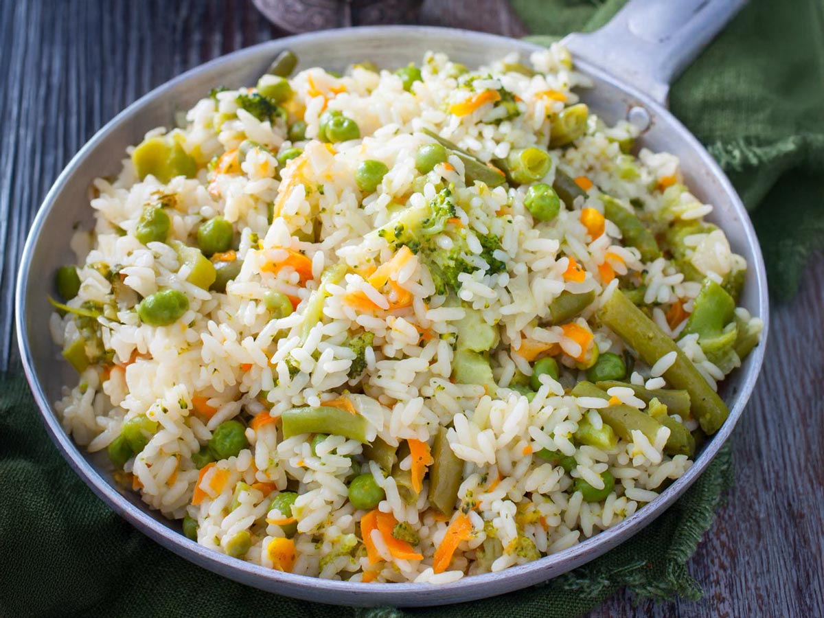 Arroz con vegetales salteados