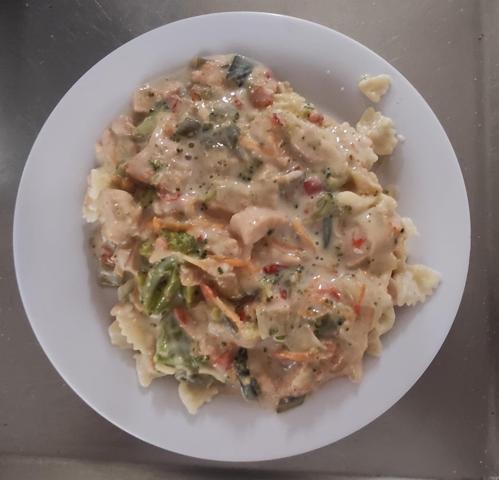 Pollo con salsa blanca y verduras